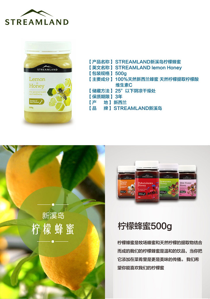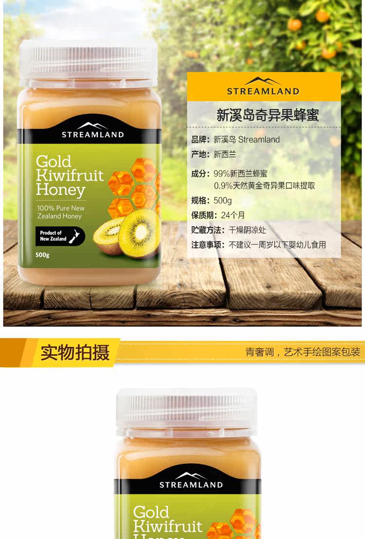 【产品名称】 Streamland 新溪岛 金色奇异果蜂蜜 500g